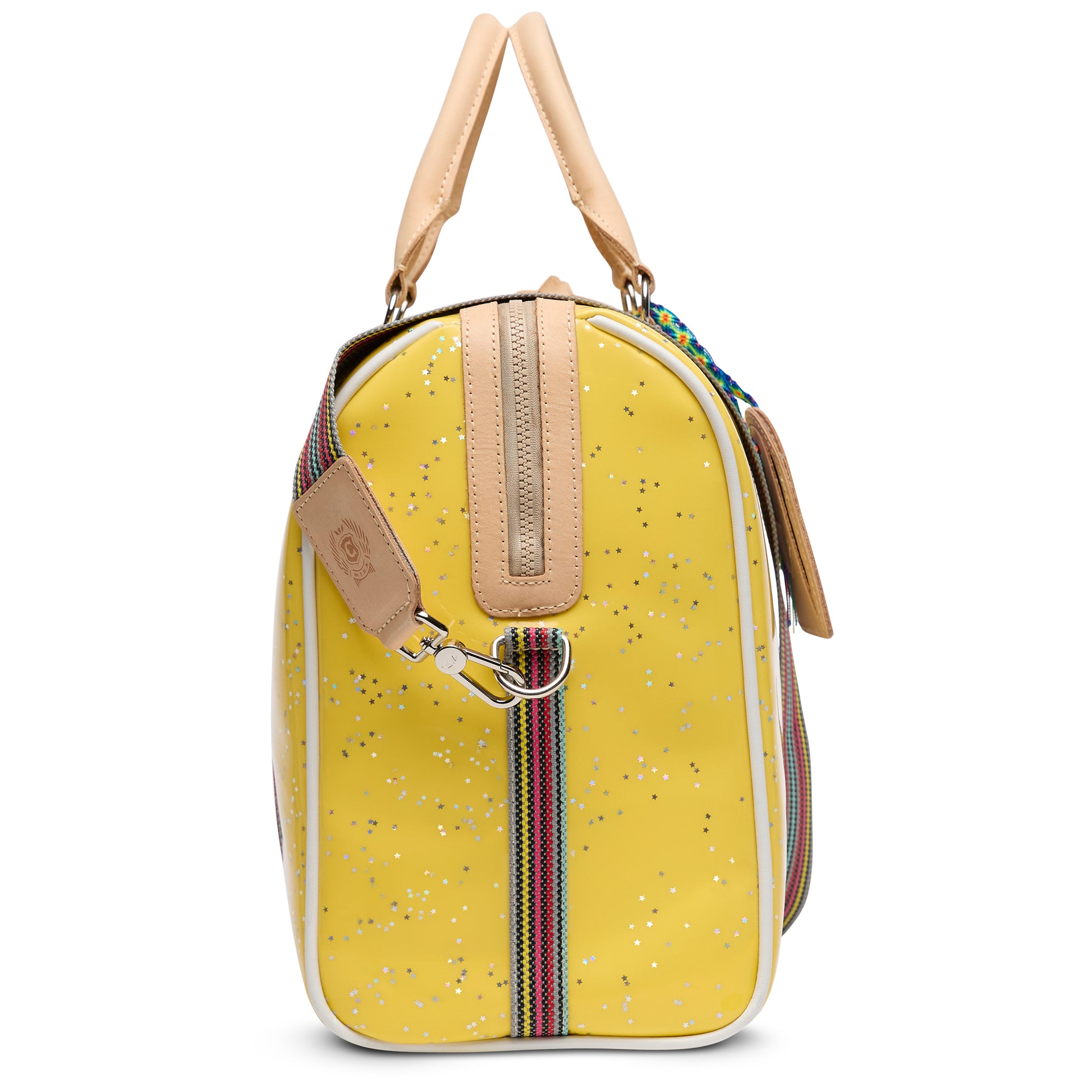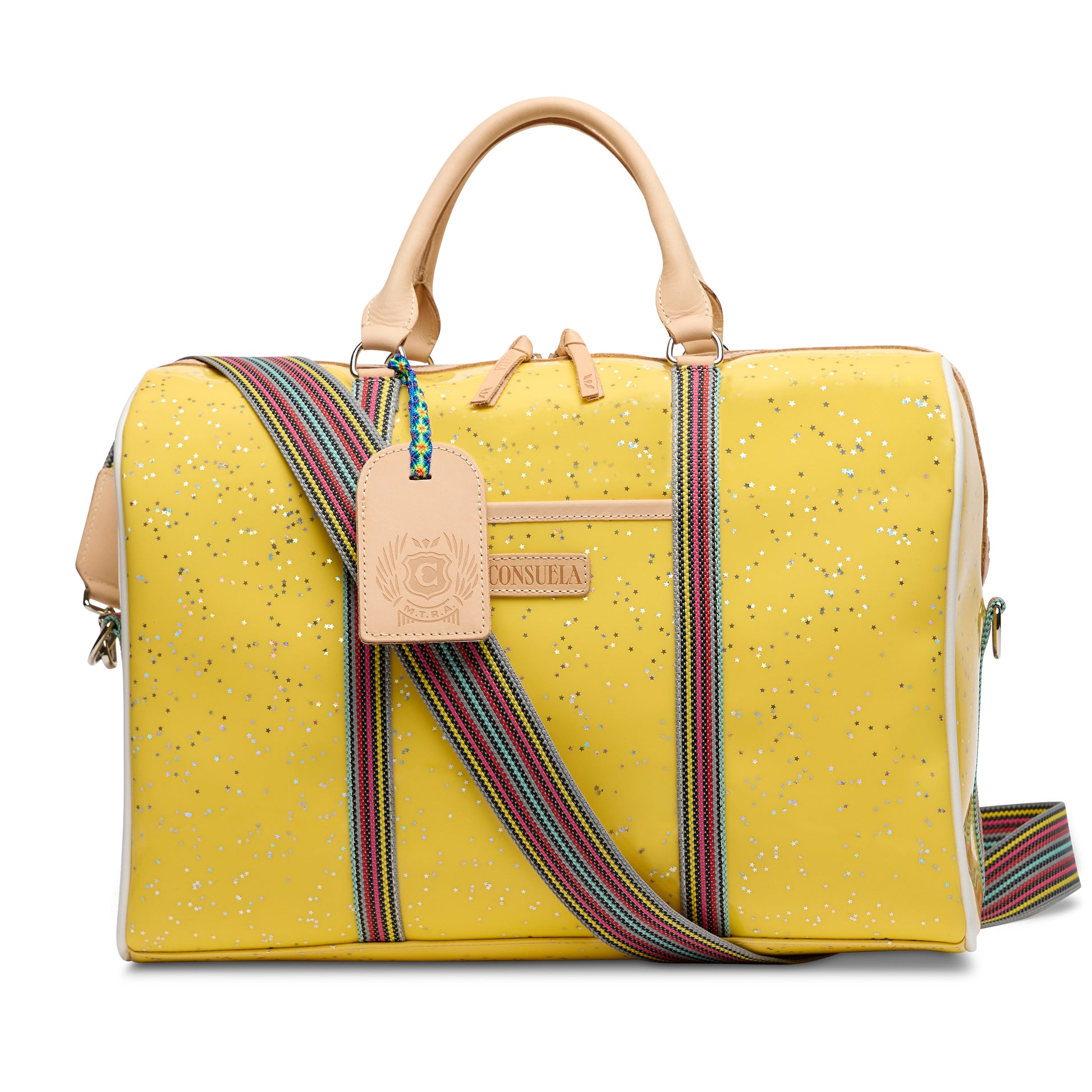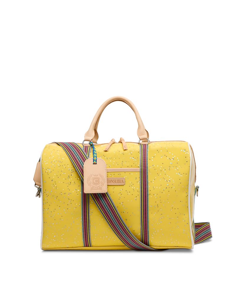 This spacious and colorful duffel is the perfect carry-on for a weekend getaway, making a statement with functionality, durability, and style. Topped with natural leather handles and an adjustable webbing strap, the Jetsetter is crafted to hold its shape and makes traveling easy with ample interior storage and functional pockets.