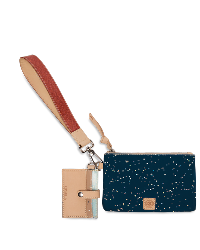 The Combi, a combination of on-the-go accessories, is a new way to carry your keys, cards, and the small stuff together or separately. This colorful wristlet wallet includes a pocket pouch, secure card slot wallet and fits comfortably around your wrist - ready for your next journey.