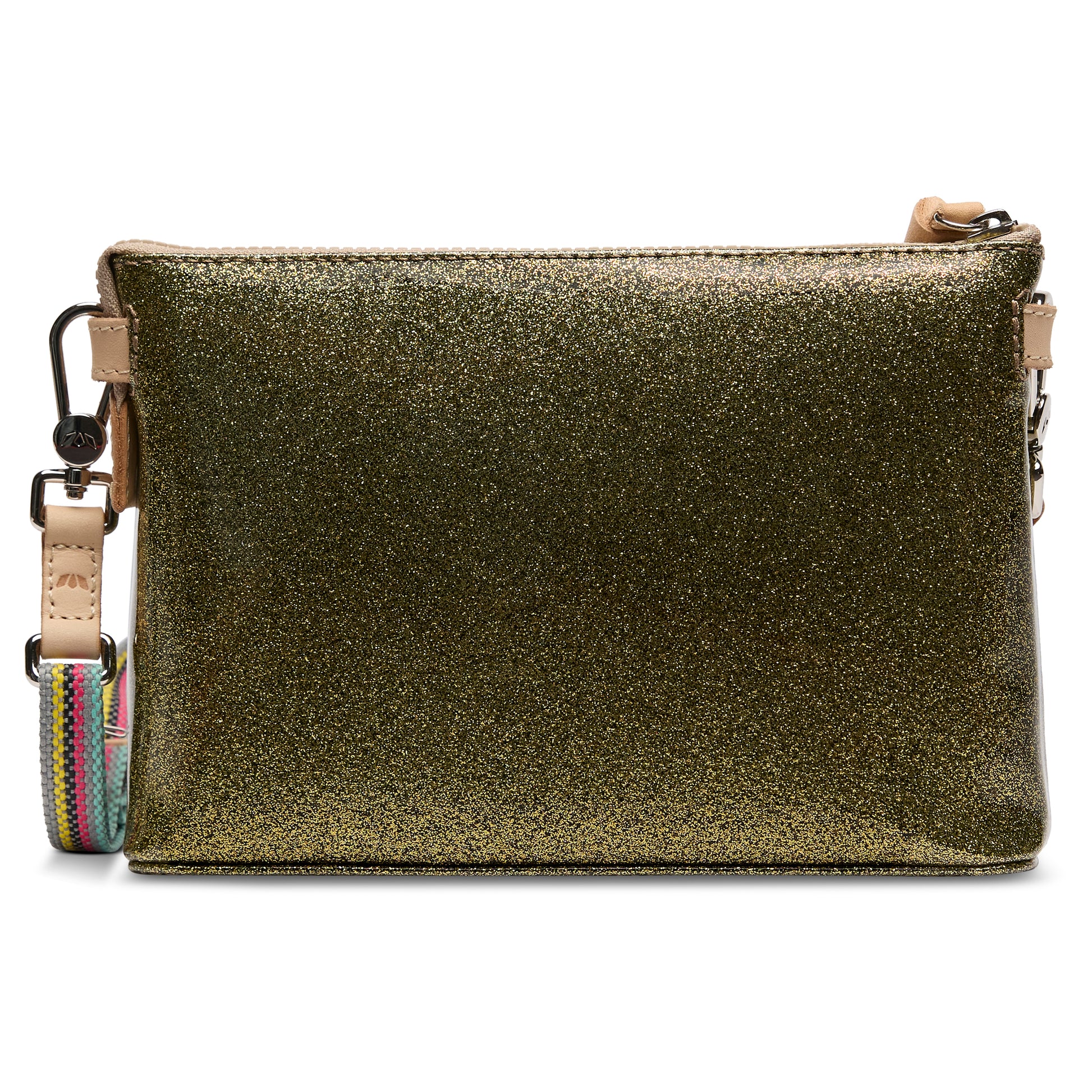 - 8 ¼" (W at the base), 9 ¼” (W at the top) x 5 ¾” (H) x 2" (D), 14 ½”-27 ½” adjustable crossbody strap drop