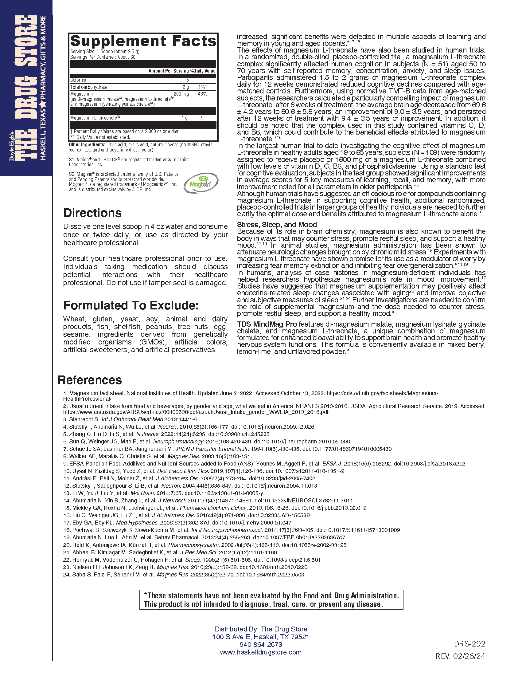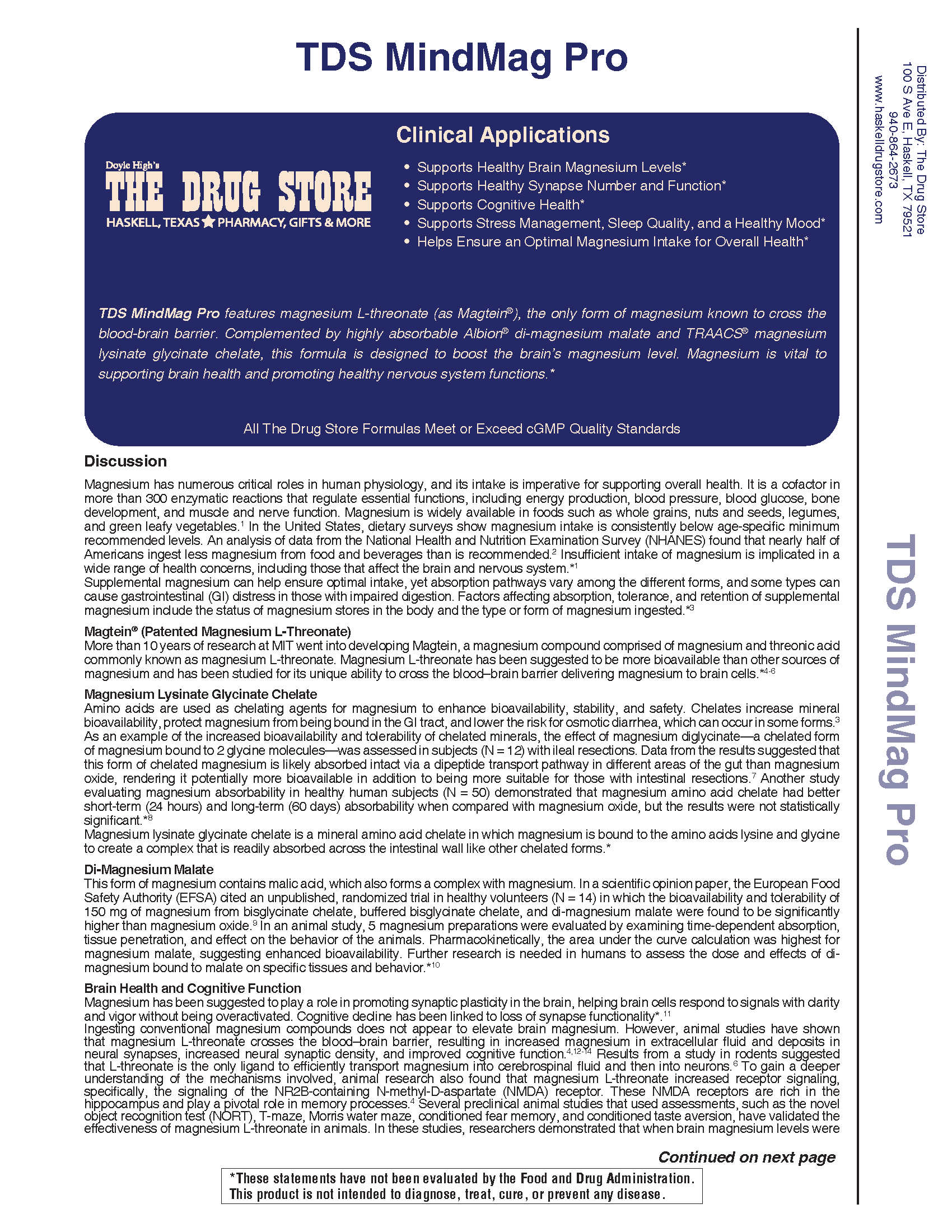 Ignite Your Mind! TDS MindMag Pro features magnesium L-threonate (as Magtein®), the only form of magnesium known to cross the blood-brain barrier. Complemented by highly absorbable Albion® di-magnesium malate and TRAACS® magnesium lysinate glycinate chelate, this formula is designed to boost the brain’s magnesium level. Magnesium is vital to supporting brain health and promoting healthy nervous system functions.*
